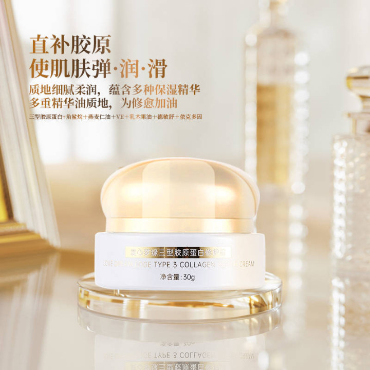 无论是干性肌肤、油性肌肤还是混合性肌肤,都能从爱心梦缘三型胶原蛋白修护霜中受益。它的质地轻盈,易推开,好吸收,不会给肌肤造成任何负担。轻轻涂抹在肌肤上,瞬间就能被吸收,仿佛为肌肤注入了一股清泉,带来极致的舒适体验。