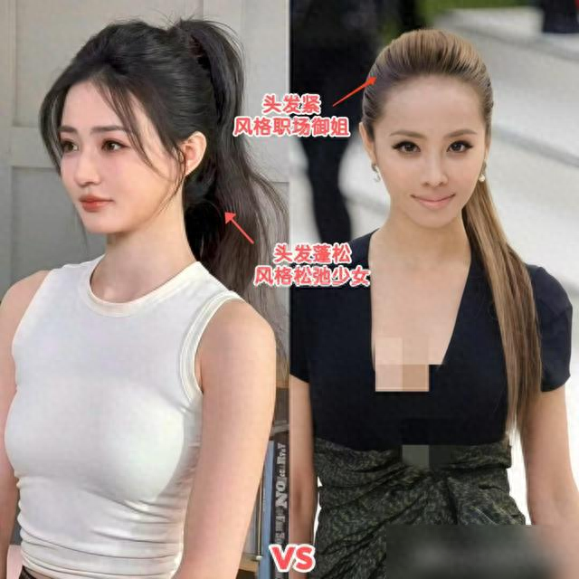 松紧度调风格,碎发多蓬松显少女感,光滑紧绷走御姐风。